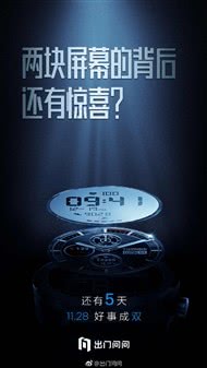 第一张海报标注:“两块屏幕背后还有惊喜?”根据此前的出门问问产品来看,这里的两块屏幕指代的是手表上的一块智能彩色屏幕与一块单色液晶屏,两者可以相互切换,本质上是一种省电模式。