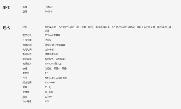 根据官网信息,我们可以知道的是荣耀xSport PRO有魅焰红、海鸥灰两种配色可选,魅焰红艳丽好看,夺人眼球;海鸥灰低调经典,十分耐看。另外,根据官网,我们还可知该耳机内置120mAh电池,约70分钟可以充满,可以支持约12小时的通话时长,整机长度约为838mm,重量约为25g,有功能键、音量加减三个按键,支持IP55级防水。