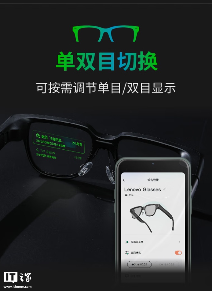 11 月 9 日消息,联想 AI 眼镜 V1 今晚正式开售,主打 38 克轻量设计,搭载树脂衍射光波导技术显示屏,最高亮度可达 2000 尼特,支持 AI 导航、提词器、语音互动等功能,首发优惠价 3999 元。