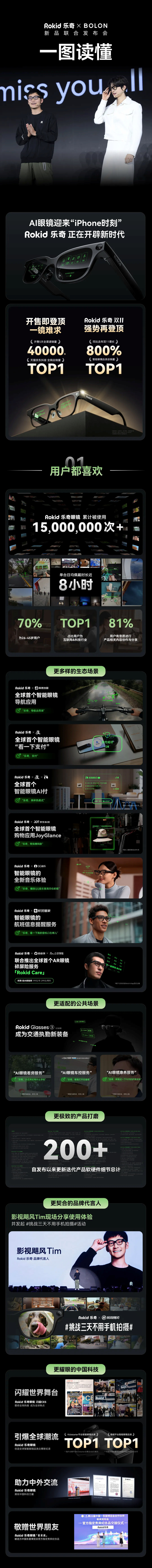 目前,Rokid乐奇眼镜国潮系列、BOLON AI智能眼镜已同步开启预售。用户可通过Rokid官方网站、天猫Rokid旗舰店、京东Rokid官方旗舰店、BOLON眼镜全国线下门店及官方线上渠道查询产品详情与购买信息。