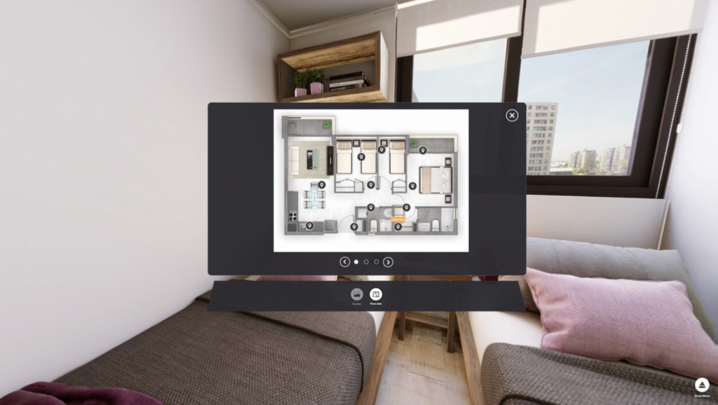 SENTIO VR的功能不仅局限于3D预览,它还可以为专业的房地产人士开启360度的虚拟体验。只需要为虚拟房间设置一个简单的六位数字代码以及密码,就可以实现与最多5名客户或是商务伙伴合作主持虚拟会议。