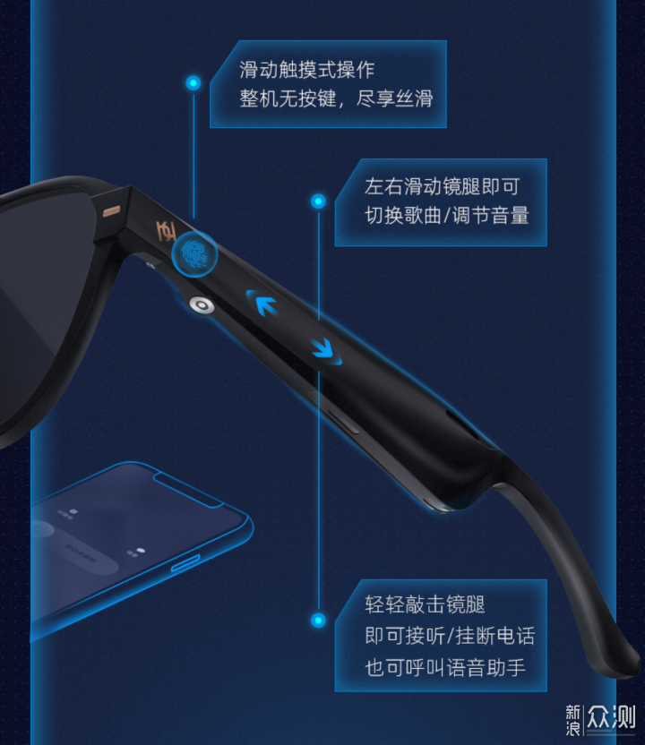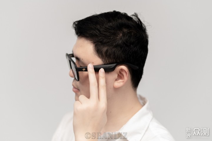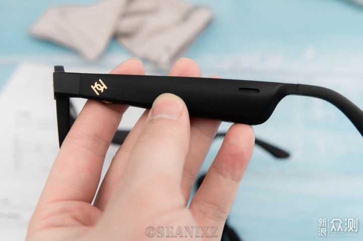 作为一款带智能眼镜,智能化的地方在于内置的蓝牙音箱,不同于我们常用的耳机,这款眼镜使用的是扬声器,双侧的扬声器组成了一套开放式的音频系统,优势是可以在实现蓝牙耳机功能的同时照顾各种眼镜佩戴的场景。
