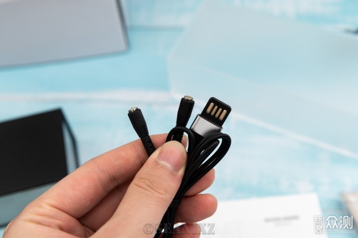 充电线,与我们常见的耳机不同,这里使用了磁吸充电的形式,一根USB充电线分出了两个磁吸接头,可以吸附在眼镜的充电端口进行充电,类似我们在手机上常用的磁吸充头,比较方便,也增加了使用寿命。