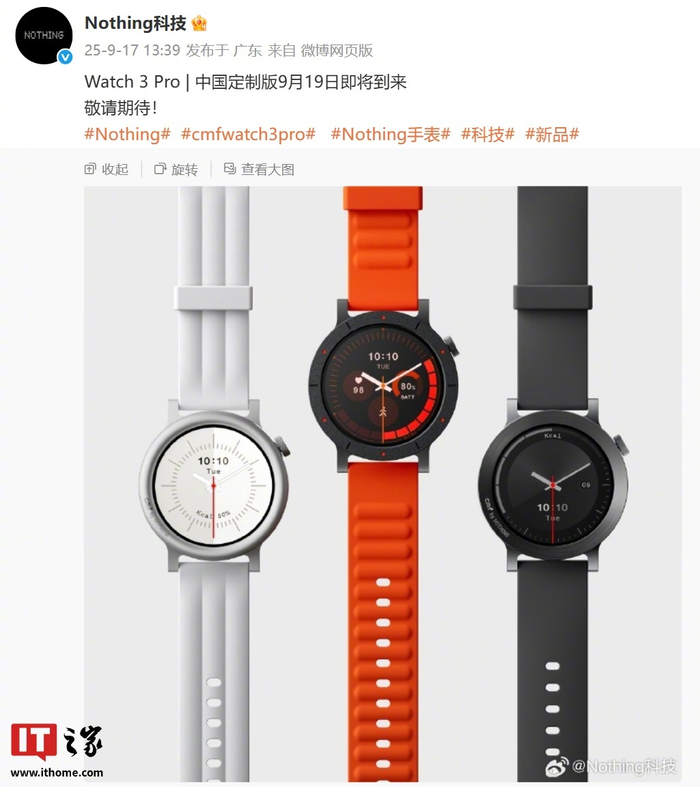 新品 | Nothing中国定制版CMF Watch 3 Pro智能手表9月19日发布