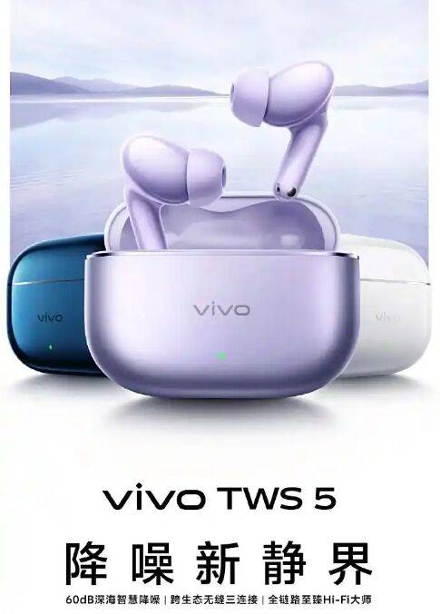 新品 | vivo TWS 5耳机定档10月13日发布:60dB深海智慧降噪、无缝三连接