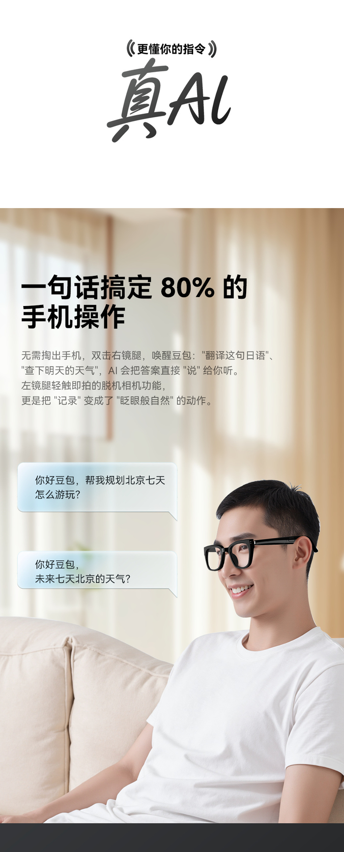 38g 的重量,和一副普通太阳镜还轻;却装下了双芯 AI 的算力、金刚转轴的坚韧,和豆包大模型的智慧 —— 它让 "抬手" 成为过去式,让 "开口" 变成最自然的交互,真正打开了 "眼镜即终端" 的 AI 语音新时代。