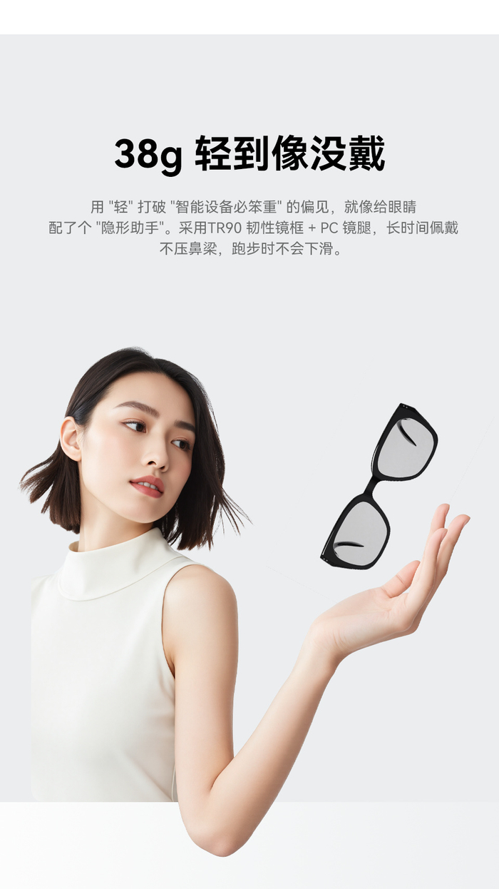 TR90 韧性镜框 + PC 镜腿,用 "轻" 打破 "智能设备必笨重" 的偏见。长时间佩戴不压鼻梁,跑步时不会下滑 —— 就像给眼睛配了个 "隐形助手"。