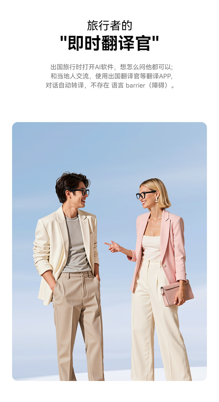 出国旅行时使用,只要打开AI软件,想怎么问他都可以;和当地人交流,使用出国翻译官等翻译APP,对话自动转译 —— 语言 barrier(障碍)?不存在的。