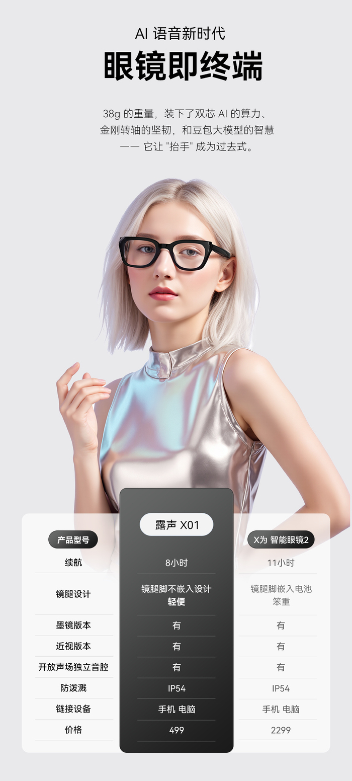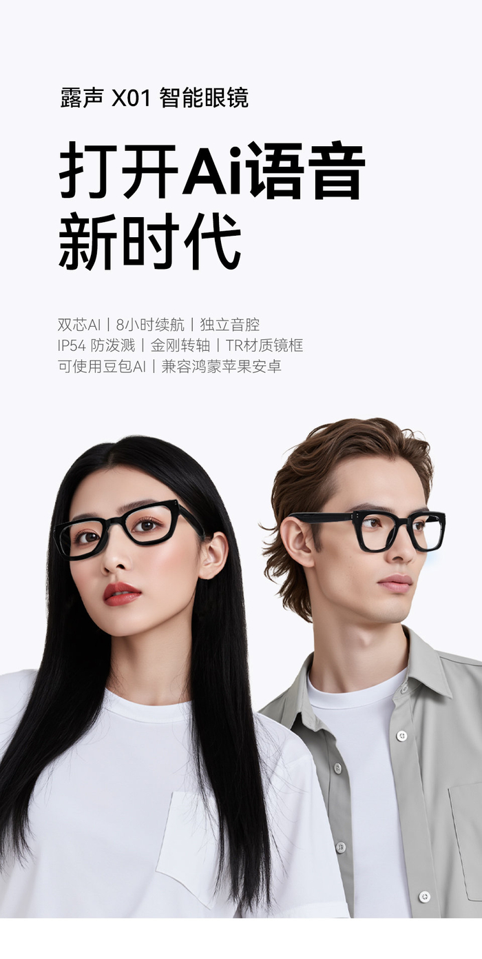 消息 | 长续航、真 AI、全兼容、轻质感!499元露声X01 AI智能眼镜上市