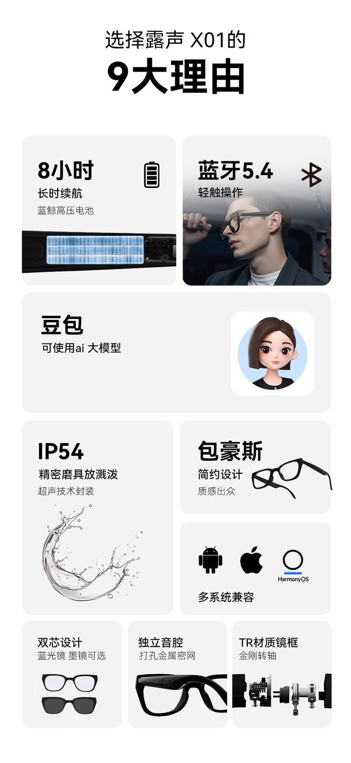 如果说传统智能眼镜是 "被动执行指令",露声 X01 则是 "主动理解需求"—— 因为它装的不是简单的语音模块,是豆包 AI 大模型的 "大脑"。
