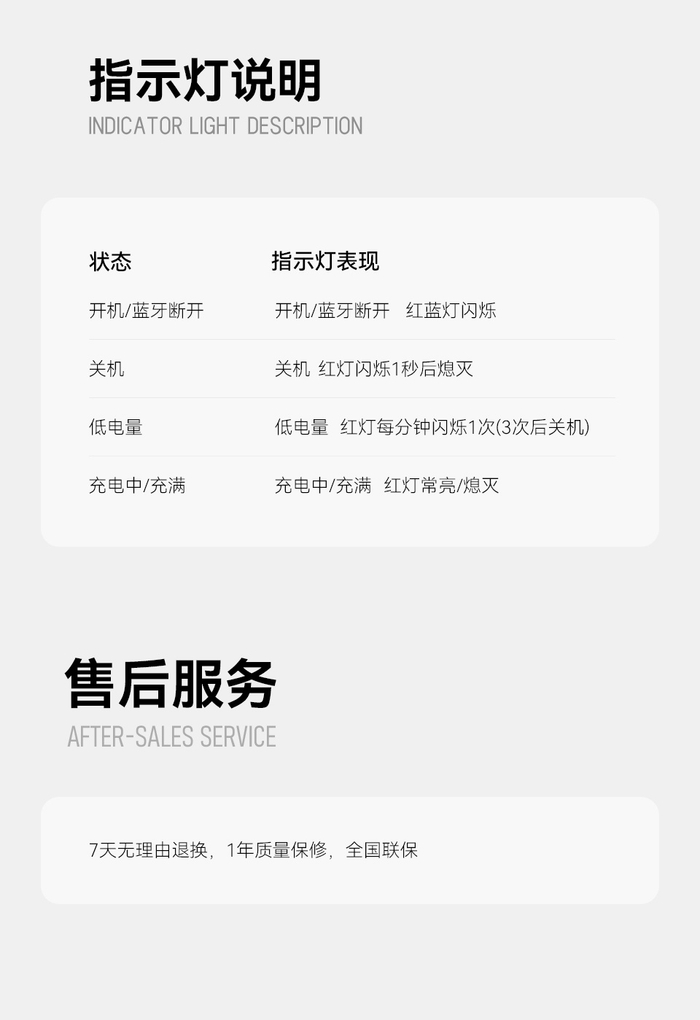 售后服务:7天无理由退换,1年质量保修,全国联保