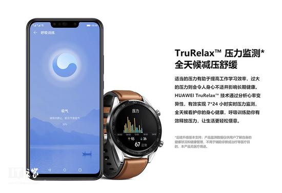 华为Watch GT支持TruRelax™压力监测,通过分析心率变异性,有效实现7*24小时实时压力监测,全天候看护你的身心健康,呼吸训练助你有效释放压力,让生活更轻松惬意。