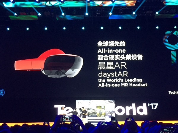 在今天的TechWorld大会上,联想展示了旗下最新的智能AR设备:晨星AR,联想称全新的晨星AR拥有全球领先的光学以及计算视觉系统,拥有三维物体识别,空间定位等自主的技术解决方案。