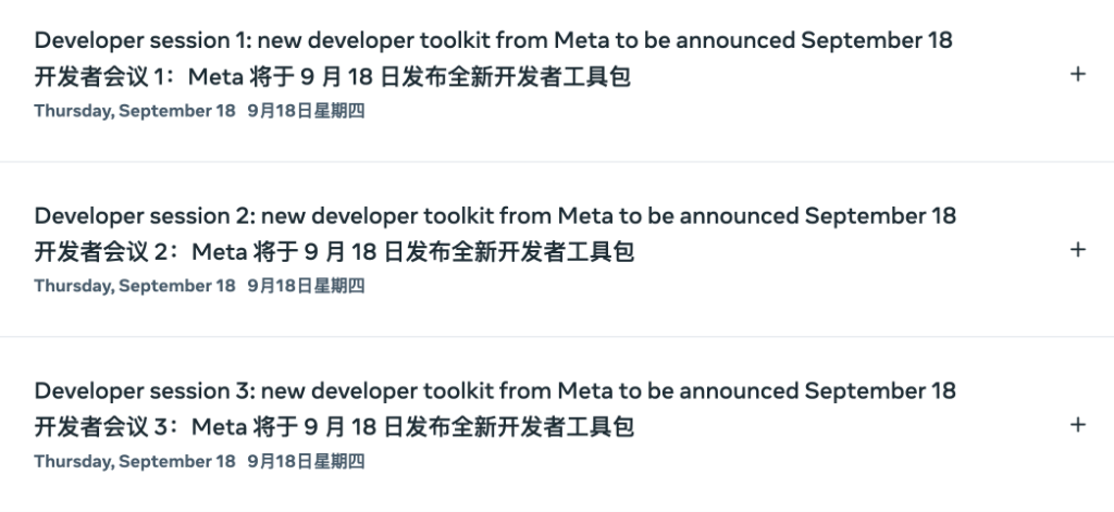 此次公布的Connect大会议程为外界提供了迄今为止最明确的线索。在大会第二天,将有三场开发者会议的主题均为“将于9月18日公布的Meta新开发者工具包”。
