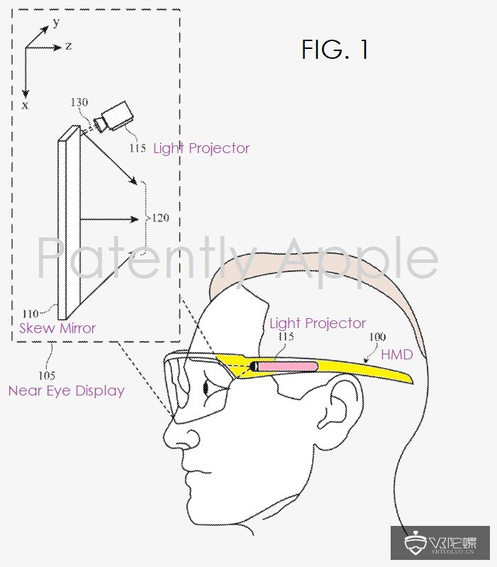 苹果公司进一步指出,偏斜镜是一种反射装置,可以在其中包括光栅介质,体积全息图或其他光栅结构。