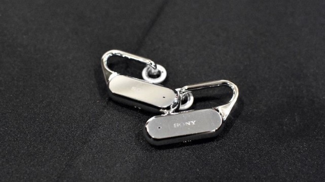 Xperia Ear Open Concept看起来与我们去年测试的Xperia Ear没什么不同。不过这次是一对无线立体声耳机,并且采用了索尼未来实验室计划开发的“Open-Ear”技术。所有的技术都被安放在耳朵后面的模块里。在我们的耳朵里,两个空间的声学导体和驱动直接把声音传送到我们的耳道里。