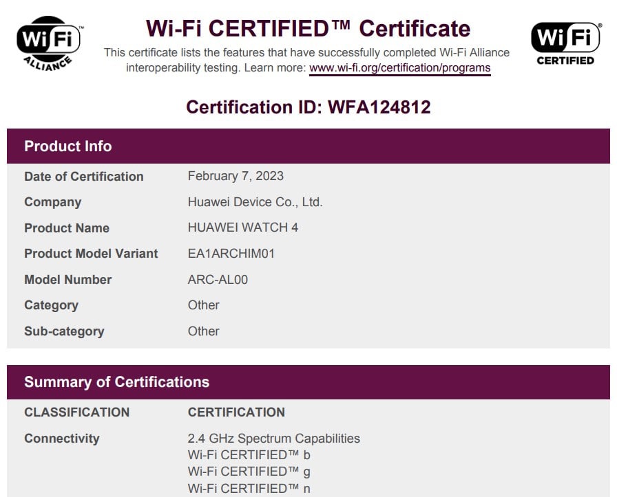 3 月 9 日消息,华为新款智能手表 Watch 4 和 Watch 4 Pro 已出现在 WiFi 联盟的认证数据库中,预计将在本月下旬的 P60 发布会中亮相。