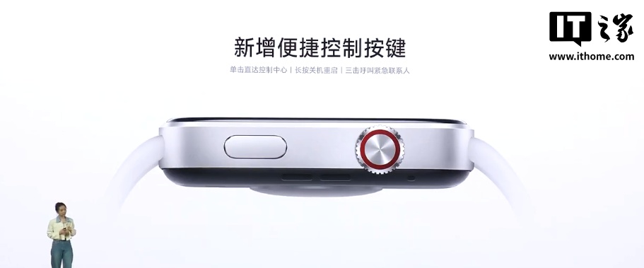 REDMI Watch 6 新增了一个便捷控制按键,可以直达控制中心、长按关机重启、三击呼叫紧急联系人。