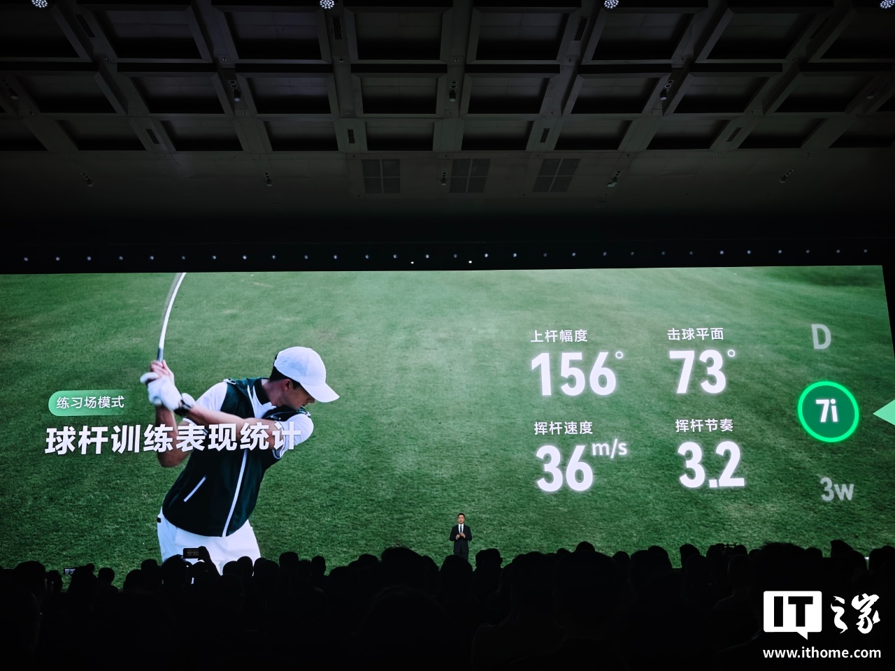 该手表迎来高尔夫四大全新功能升级,包括挥杆动作检测、球杆表现分析、果岭视图升级、多彩表圈计分。