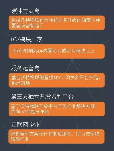 沃特物联专业服务团队在物联网应用场景、用户体验、平台架构、安全和大数据等方面具有丰富的经验,能及时有效响应客户需求的能力。平台上线之后针对不同类型的企业提出了不同的合作方案,希望能进一步加深与各级产业链的深度合作,形成覆盖渠道和客户的闭环,也形成服务型生态。