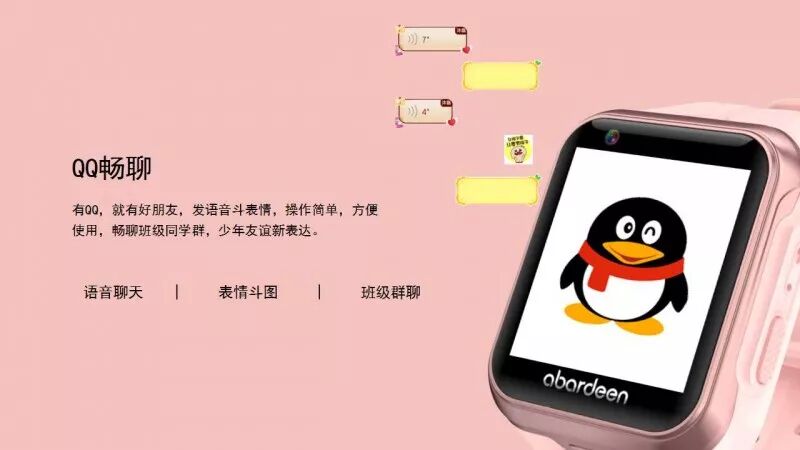 阿巴町与腾讯定制开发了专属10后孩子们使用的绿色纯净版QQ,还可以发语音和斗表情。戴上阿巴町V3与班上同学成为QQ好友,遇上学习的难题,大家一起讨论解答,一起学习成长!