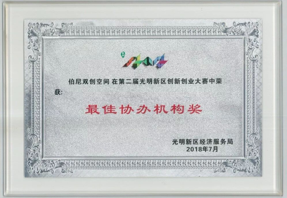 作为“光创赛”的协办机构之一,伯尼双创空间获最佳协办机构奖。