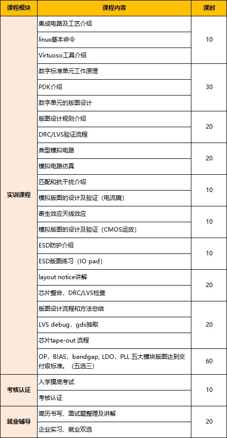 通过实训的学员将收获模拟版图设计工程师所必备的全部技能和到企业的实习、就业机会。