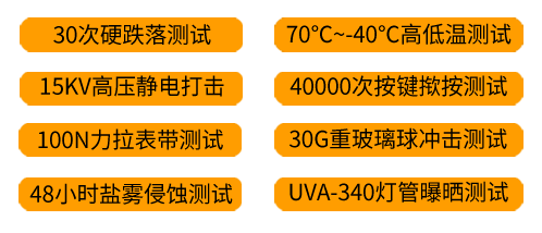 为保证产品质量,D1 Sport在出厂前会进行多项品质检测,包括15kv高压静电打击、30次硬跌落测试、70℃~-40℃高低温测试、48小时盐雾侵蚀测试、40000次按键揿按测试、30g重玻璃球冲击测试、100N力拉表带测试、UVA-340灯管曝晒测试等等。虽然价格突破底线,但质量坚持做到D1。