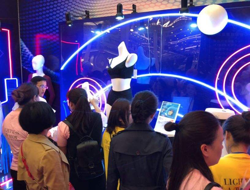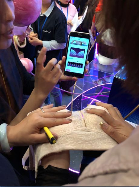 AI智能乳腺健康监测内衣的亮相,得到了海内外加盟客户的高度认可,现场纷纷体验,甚至现场为终端用户实行预售。