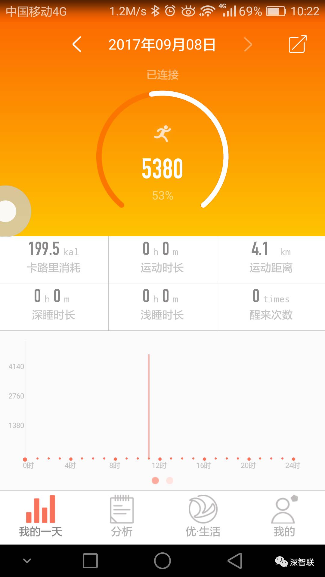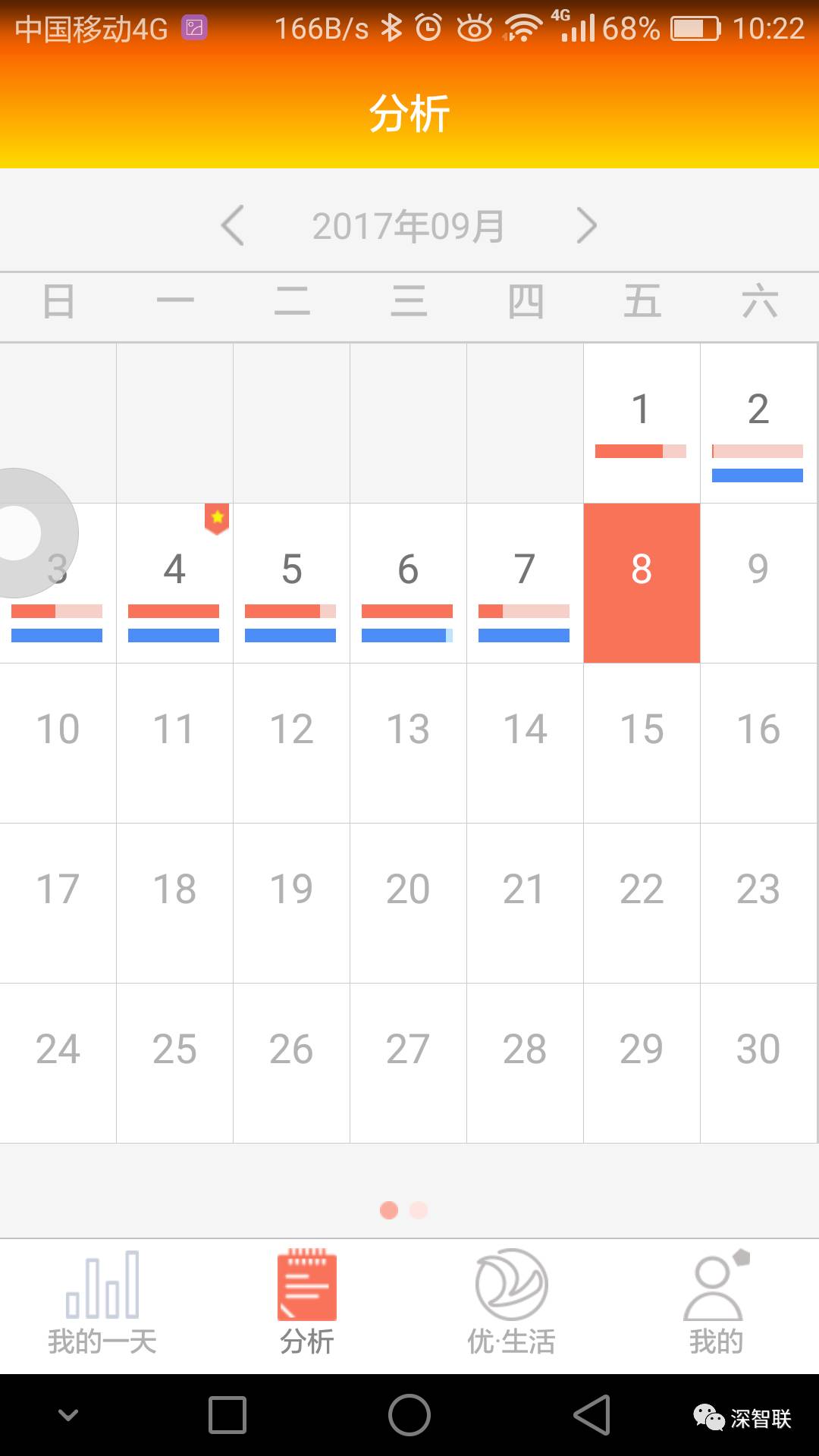 APP的界面特别简单明了,使用起来特别的方便,分为“我的一天”、“分析”、“优·生活”、“我的”四个板块。