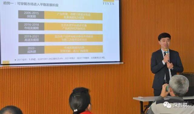 分享会开始时,潘会长代表作为联合主办方,对到场的嘉宾表示真挚的欢迎,向来宾分享了2017年智能手表、智能手环的发展现状,表示智能手表将成为智能穿戴设备的主流,并提出了未来智能手表主要发展的三大方向: